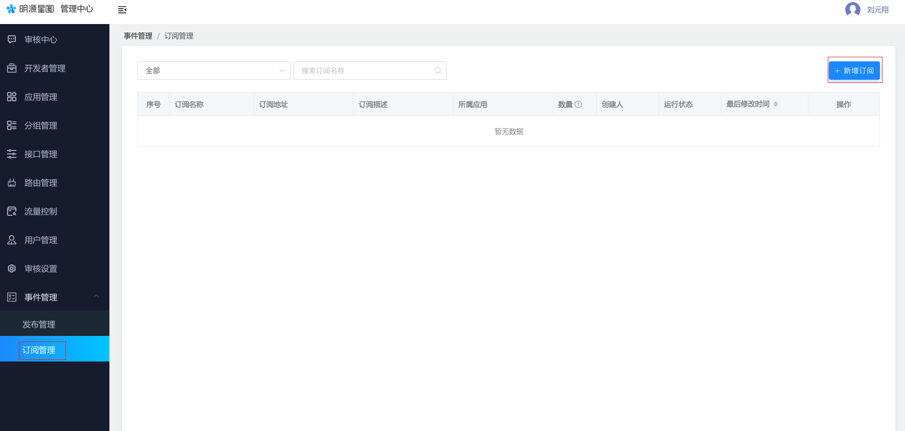 订阅方点击【新增订阅】按钮,选择订阅所属应用,填写基本信息: